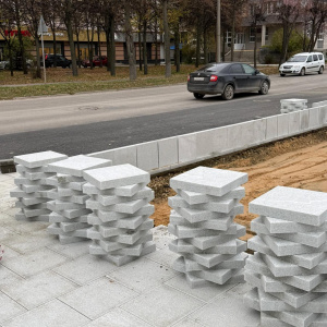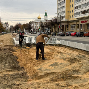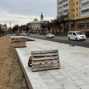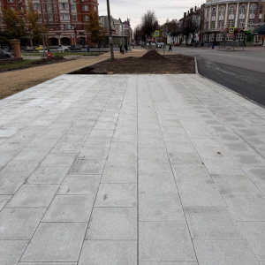 Сейчас подрядчики работают над благоустройством пешеходной зоны вдоль улицы Вознесенской. Здесь продолжают укладывать гранитные плиты весом по 25–30 килограммов. Процесс требует аккуратности и физической силы, чтобы новая пешеходная часть получилась ровной и долговечной.