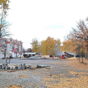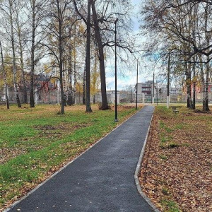 Уже выполнена большая часть работ: уложены дорожки, идет асфальтирование и установка скамеек и освещения.