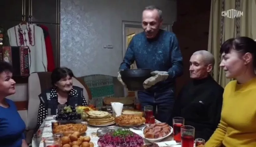 Владимир достает из погреба вкусные огурчики и помидорчики. Именно их он вручил во время передачи Андрею Малахову - а также набор вкусной колбасы, произведенной в колхозе, где он работает. Затем Владимир Шумилов берет на передаче гармонь и затягивает военную песню “Маруся от счастья слезы льет”. Ведь недаром он служил в ВДВ, имеет больше ста прыжков с парашютом и в свое время провел на службе восемь лет в Германии.