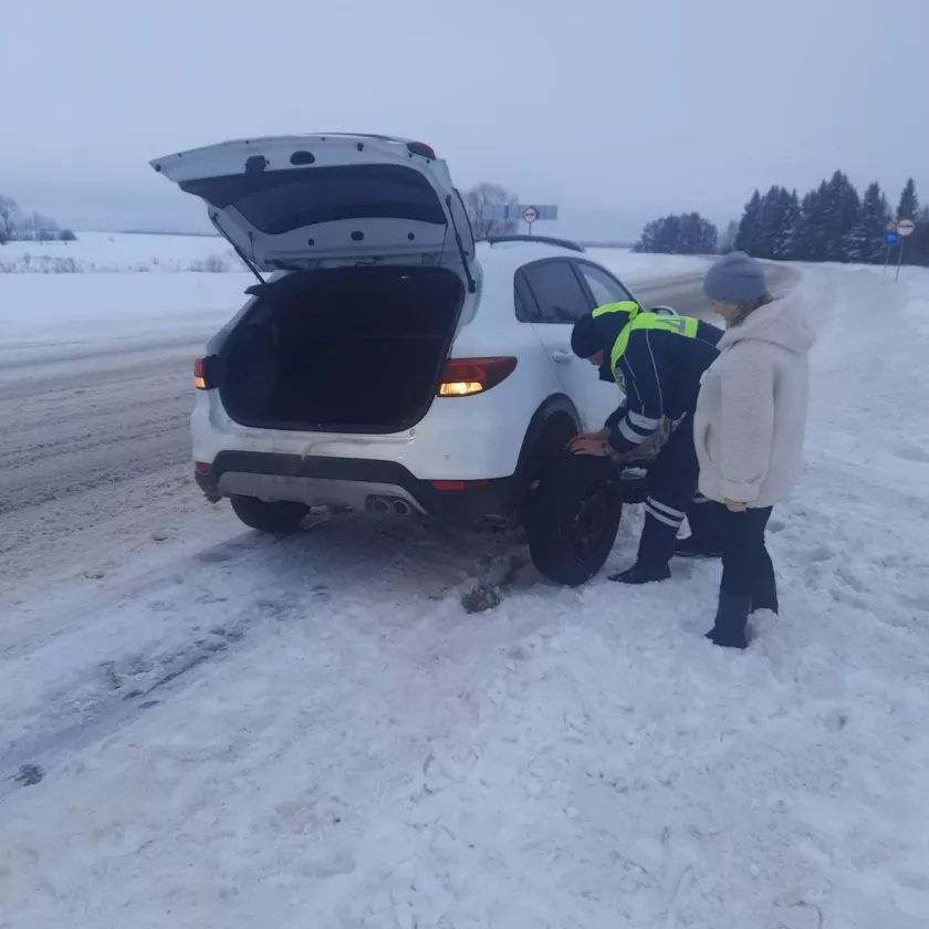 На 17-м километре дороги Козьмодемьянск — Большой Сундырь патрульные заметили остановившийся автомобиль. Около машины находилась растерянная водительница, которая объяснила, что колесо спустило и ехать дальше нельзя.