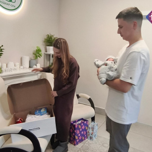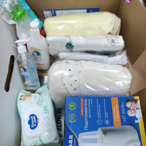 Теперь в комплект входят детские средства гигиены, полотенце с капюшоном из махровой ткани, плед, нагреватель и стерилизатор для бутылочек, ниблер, поильник и пелёнки. Первый обновлённый набор в 2026 году передали молодой семье в Перинатальном центре.