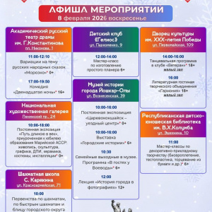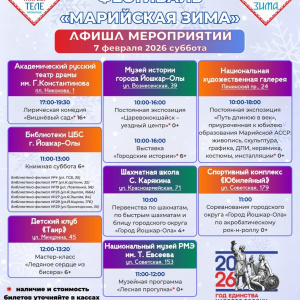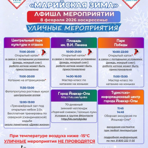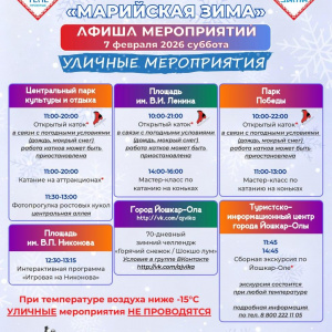В Йошкар-Оле 7 и 8 февраля пройдет фестиваль «Марийская зима» с программой для детей и взрослых – спектакли, мастер-классы, выставки, катки, экскурсии и уличные активности.