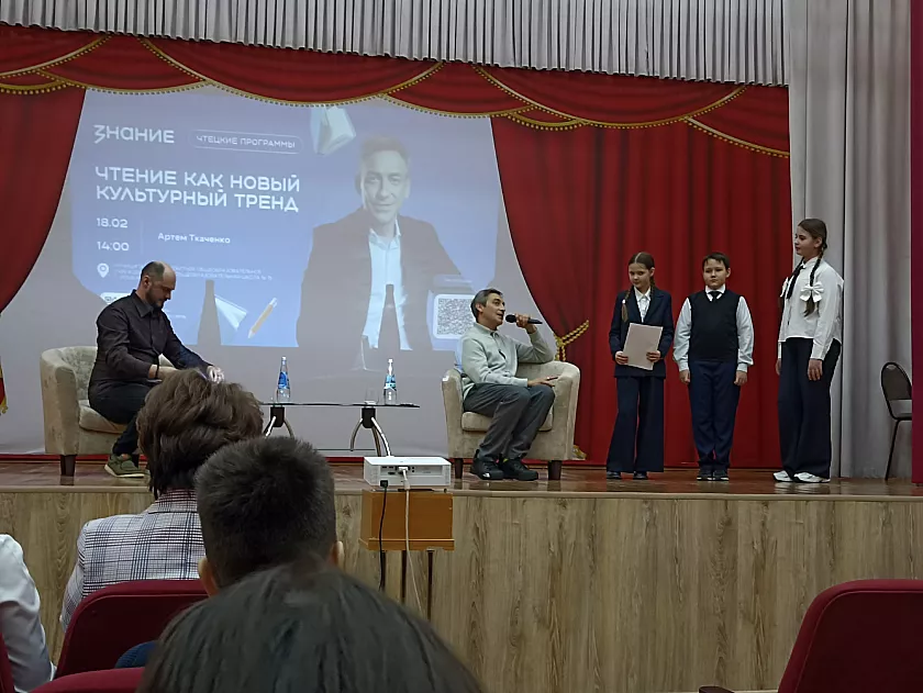 Проект «Чтецкие программы» реализуется Российским обществом «Знание» по всей стране и направлен на популяризацию чтения и литературы среди молодёжи. Встреча с Артёмом Ткаченко стала одним из этапов масштабного просветительского тура по российским регионам, в ходе которого известные деятели культуры встречаются с учениками российских школ.
