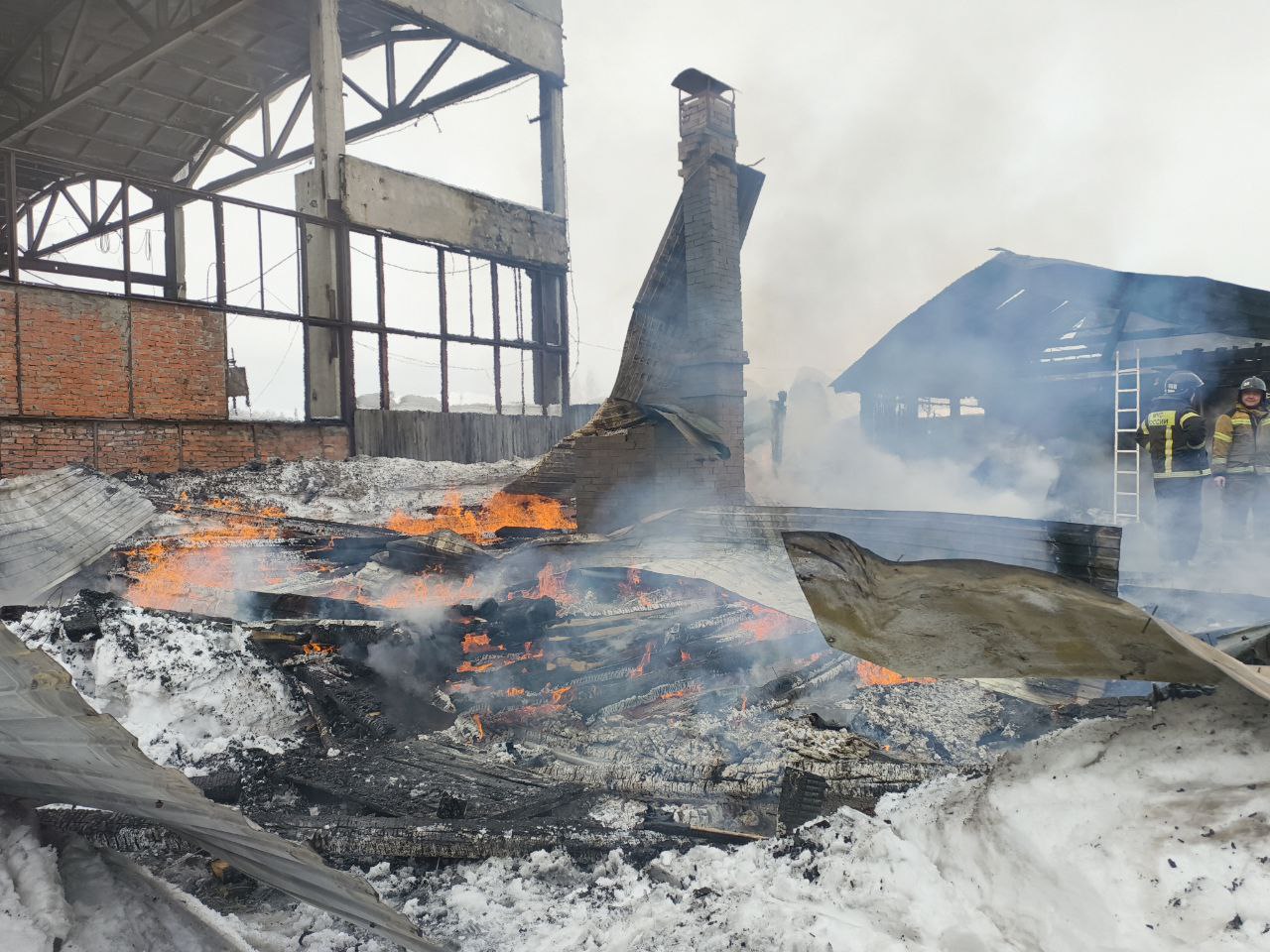 Крупный пожар тушили на заводе по производству деревянной тары в Советском