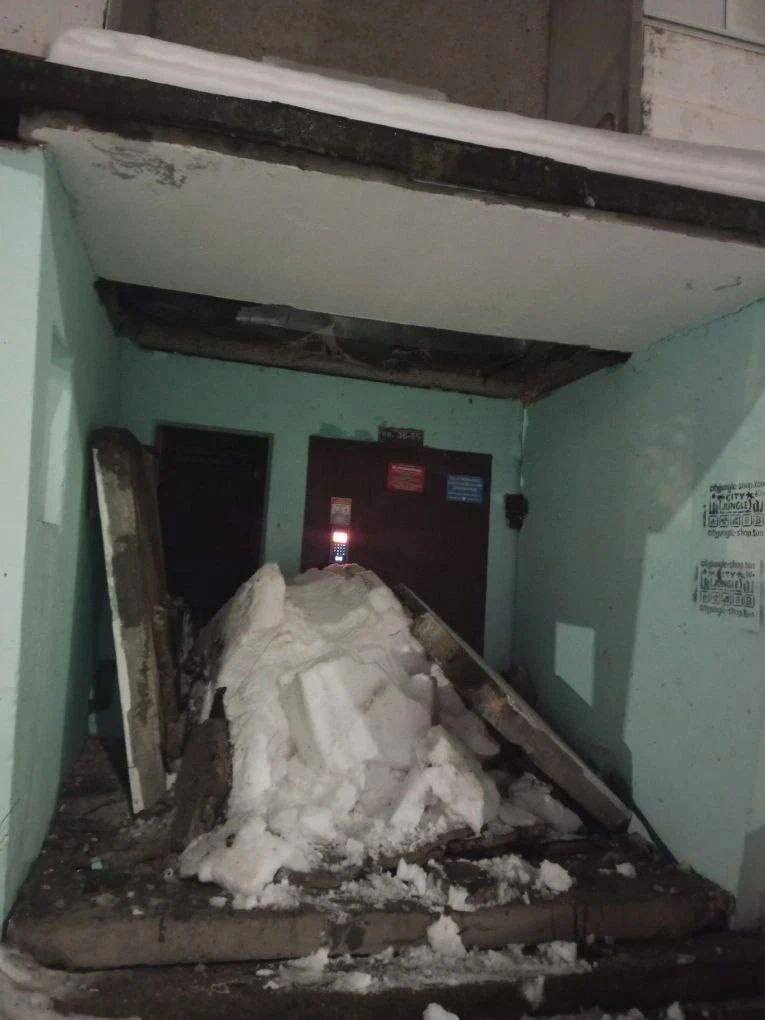 Бетонная плита обвалилась перед подъездом в Медведево: видео