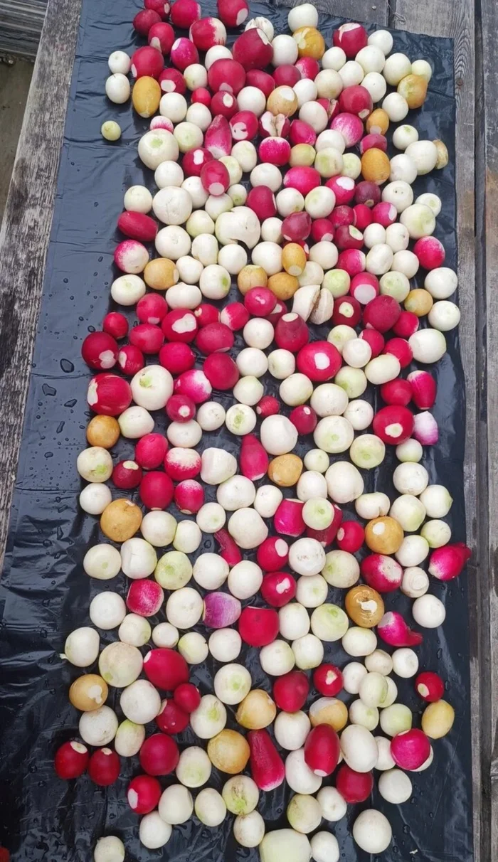 По сортам все оказалось проще, чем ожидалось: в теплице одинаково хорошо растет и редис за условные три рубля из старых запасов, и дорогие новые гибриды. Разница есть, но некритичная. Из надежных вариантов – «Поиск» и «Семена Алтая». Из смеси сортов «Радуга» от Ганечкиной вырос особенно понравившийся редис, но какой именно сорт – определить не удалось. Китайские семена берут количеством, но по вкусу уступают отечественным; зато для подзимнего посева с запасом – самое то.