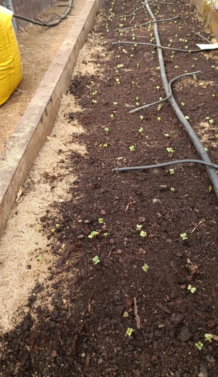 Капельный полив решает сразу несколько проблем: почва не пересыхает, но и редис не трескается от переувлажнения. В теплице нет крестоцветной блошки, которая в открытом грунте заедает редис подчистую. Короткий световой день в начале сезона и перепады дневных и ночных температур редису явно нравятся.