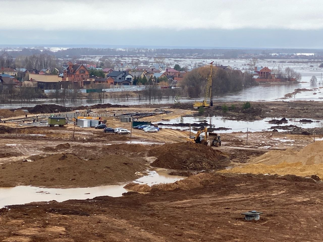 Заливные луга в Йошкар-Оле затопило в начале апреля. Уровень воды поднялся выше береговой линии и вплотную подошел к фундаменту строящегося детского сада. Несмотря на проведенные работы по берегоукреплению и отсыпке грунта, вода затопила территорию. Данная ситуация ставит под вопрос безопасность возведения объекта на этом участке. Ранее эксперты и суды рассматривали обоснованность расчетов защиты участка от подтопления.