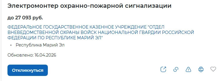Отдел вневедомственной охраны войск Росгвардии по Марий Эл ищет специалиста, который будет устанавливать, монтировать, налаживать и ремонтировать охранно-пожарную аппаратуру. По сути — человек, от работы которого зависит безопасность объектов. Требования серьёзные: среднее профессиональное образование, знание радиоволновых приборов.