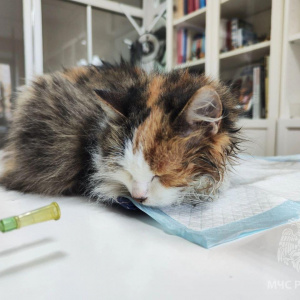 Газодымозащитники беспрепятственно попали в квартиру. В одной из комнат они нашли кошку в бессознательном состоянии.