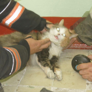 Пожарные вынесли кошку из квартиры и начали оказывать ей помощь, используя легочный автомат от дыхательного аппарата со сжатым воздухом. После “реанимационных” мероприятий один из огнеборцев отвез животное в ветеринарную клинику, где ей оказали профессиональную помощь.