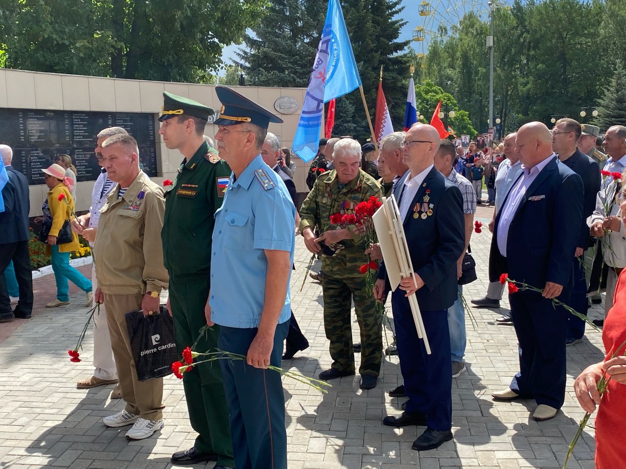 Затем все участники памятного мероприятия собрались у Стелы павшим воинам в локальных войнах в Центральном парке культуры. Там прошло торжественное мероприятие, посвященное Дню ветеранов боевых действий