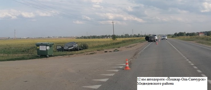 Примерно в 17 часов в Моркинского районе произошло следующее ДТП. 15-летний подросток, не имея права управления, управляя мотоциклом ИЖ Планета-3, не выбрал безопасную скорость движения, не справился с управлением и съехал в кювет с последующим опрокидыванием. Несовершеннолетний госпитализирован. Около 17:20 на трассе Советского района 64-летний водитель Лады Калина, двигаясь по второстепенной дороге, не уступил дорогу автомашине ВАЗ-2112 под управлением 27-летнего водителя. В результате ДТП травмы получили оба автомобилиста.