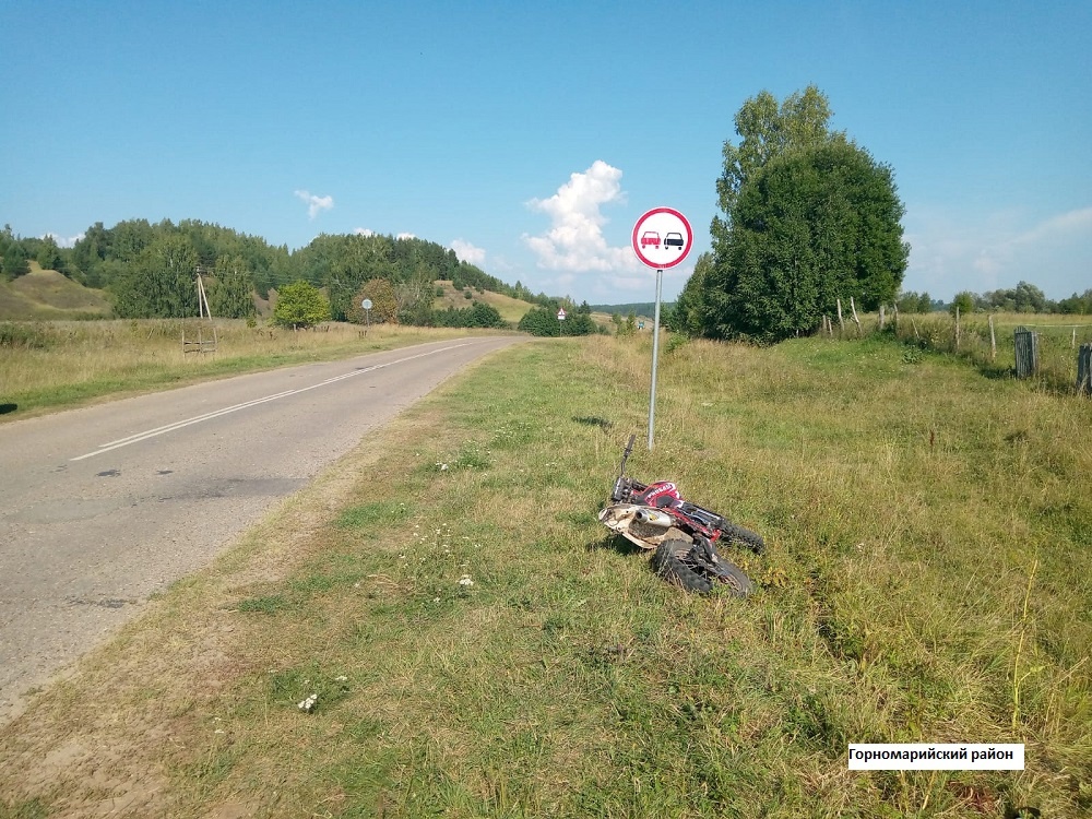 В этот же день, около 14 часов 30 минут, на 5 км дороги Виловатово - Шиндыръялы Горномарийского района 14-летний мотоциклист на высокой скорости не справился с управлением, съехал в кювет и опрокинулся. Мальчик госпитализирован.