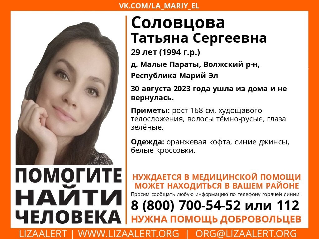 В Марий Эл разыскивают 29-летнюю жительницу деревни Малые Параты Волжского района. В среду, 30 августа, она ушла из дома и не вернулась.