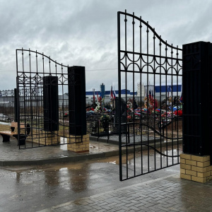 Черный обелиск и новые ворота установили при входе на "Аллею героев" на Туруновском кладбище
