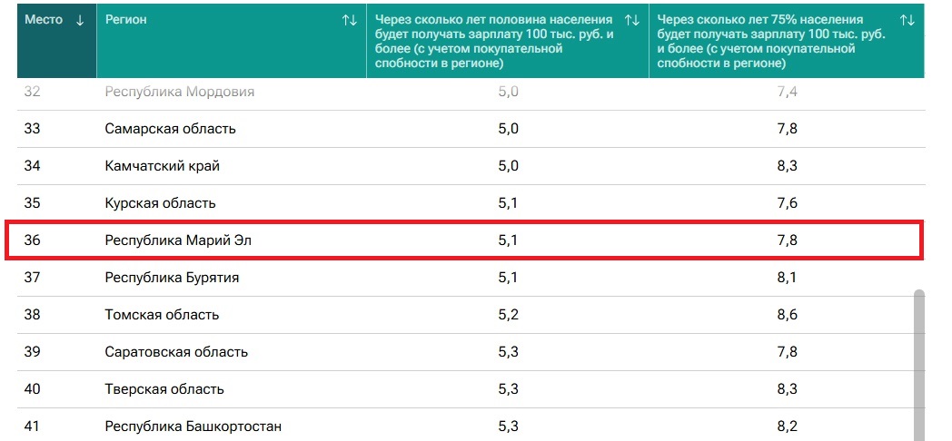 Эксперты отмечают, что ведущими регионами по уровню зарплат традиционно остаются северные и добывающие территории России: Ямало-Ненецкий автономный округ, Чукотский автономный округ, Магаданская и Мурманская области, а также Ханты-Мансийский и Ненецкий округа. Там медианная зарплата уже превышает 80-90 тысяч рублей, и среднестатистический житель этих регионов может рассчитывать на доход в 100 тысяч рублей менее чем через два года. Для Марий Эл и большинства российских регионов эта задача остаётся пока что на горизонте в 5-7 лет.