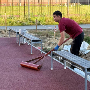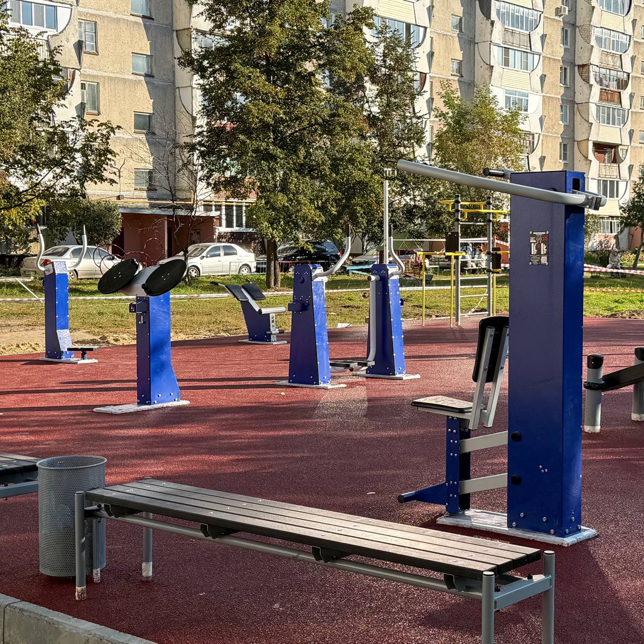 Подрядной организацией уже выполнены основные работы. Возле дома №17 установлен комплекс из 13 современных уличных тренажеров и уложено безопасное покрытие из резиновой крошки. На второй площадке, возле дома №20, рабочие в настоящий момент завершают монтаж аналогичного резинового покрытия. Также для удобства горожан установлены новые скамейки для отдыха.